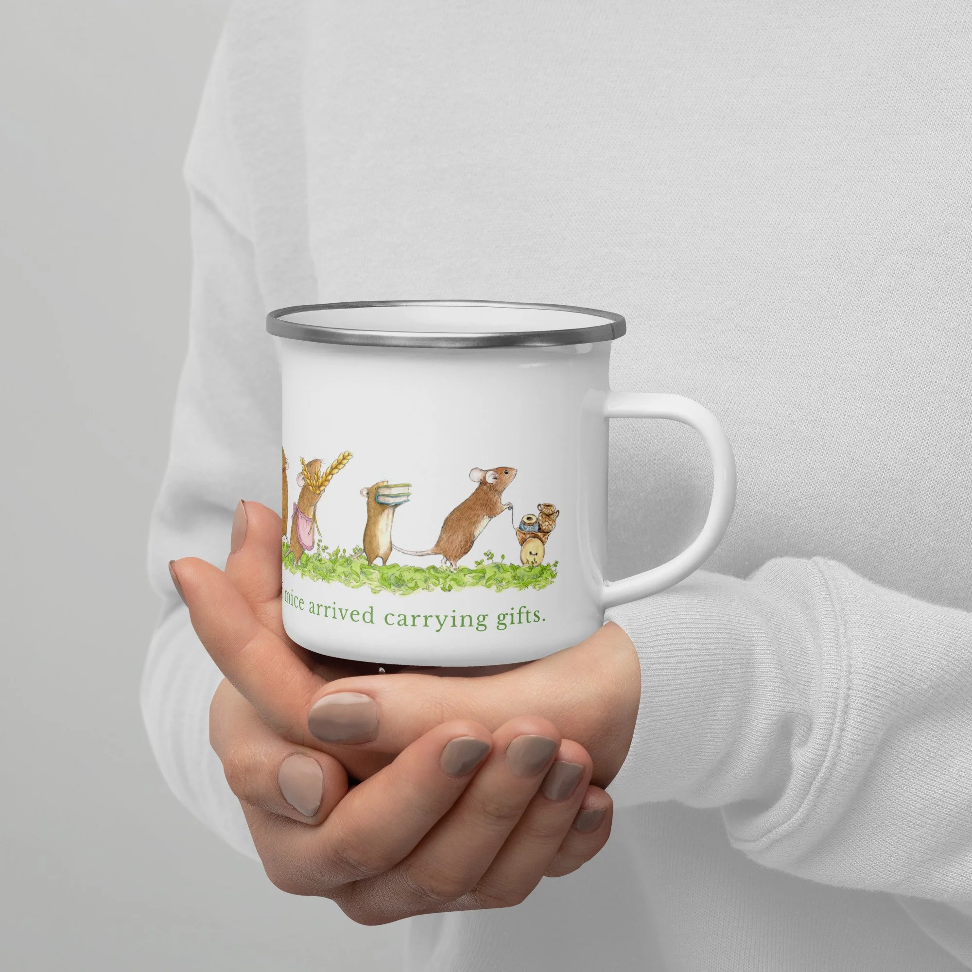 With their classic, timeless look George the Mouse in a Log Pile House enamel mugs are a perfect choice for remembering your favorite scenes from the book. Lovely watercolor illustrations by Alissa Hansen will sweeten your mornings with their delightful details and charming scenes of Log Pile life.
