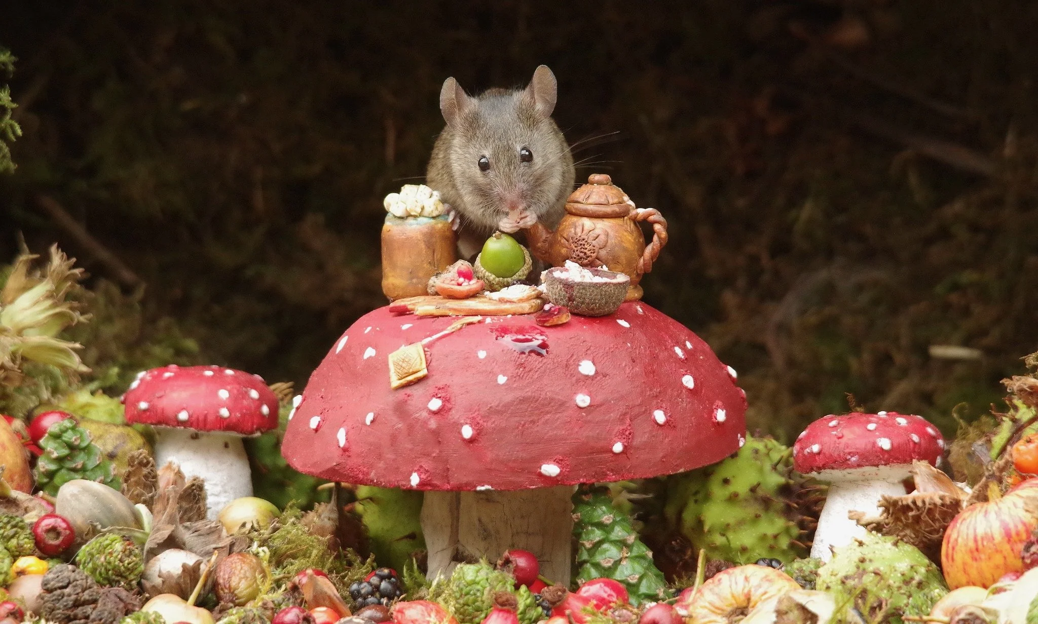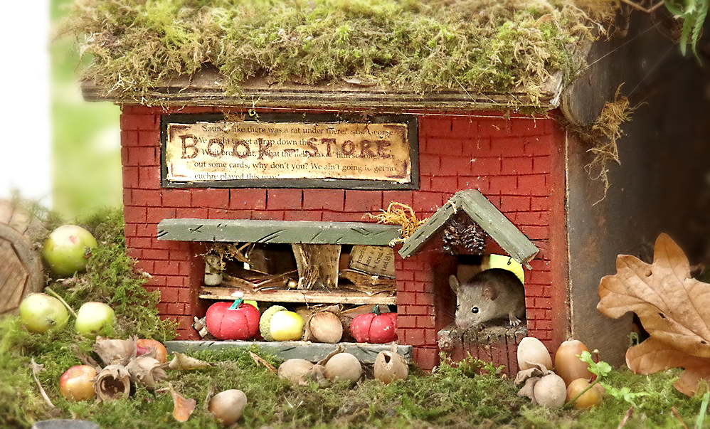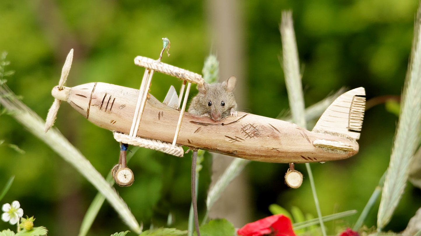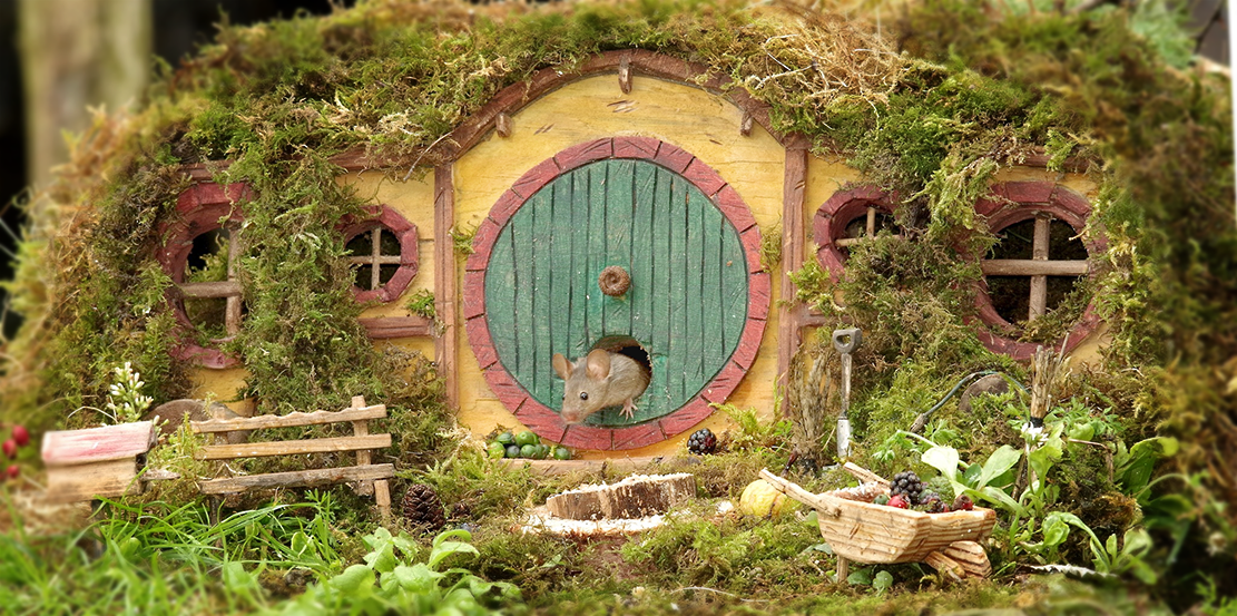 As seen in People Magazine, and featured in media around the world, Simon and George have transformed an ordinary backyard log pile into a jolly mouse village! Families of wild mice frolic and play amongst the handcrafted homes and festive settings lovingly created for them by their caretaker, Simon, affectionately known as Mr. Tographer by the tiny village residents.
